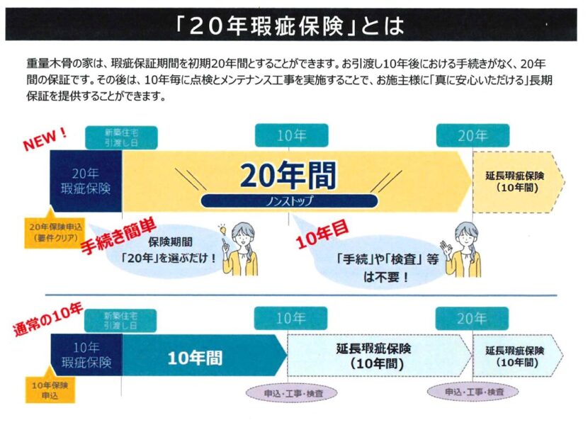 「初期20年保証」とは、最初から20年間保証が切れずに続く仕組み。