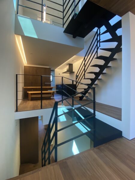 それを軽やかにつなぐ階段によって、空間が立体的に連続していることです。