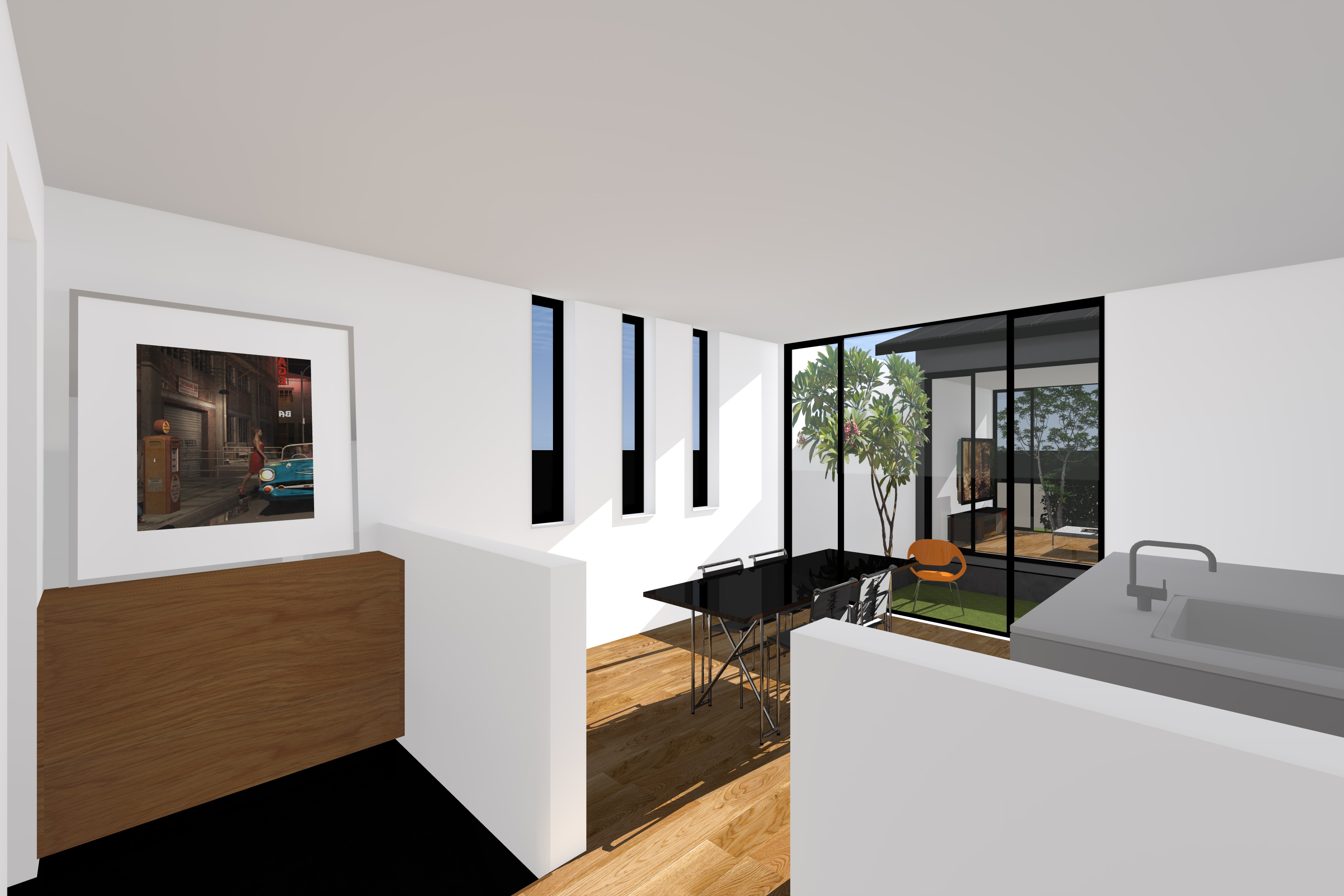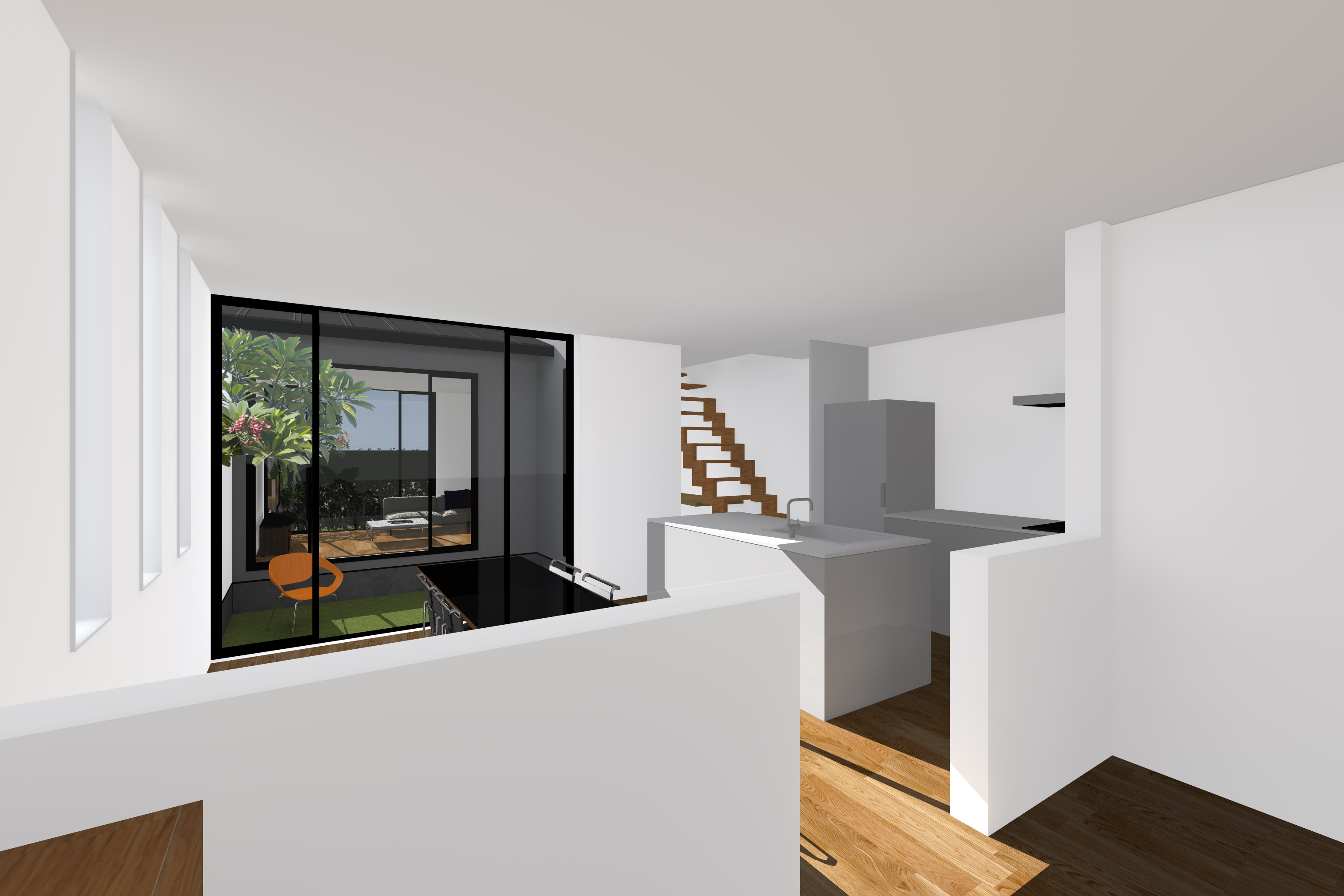 京都ならではの、南北に長い敷地形状を最大限活かし、家中に光と風の届く中庭計画でのご提案です。