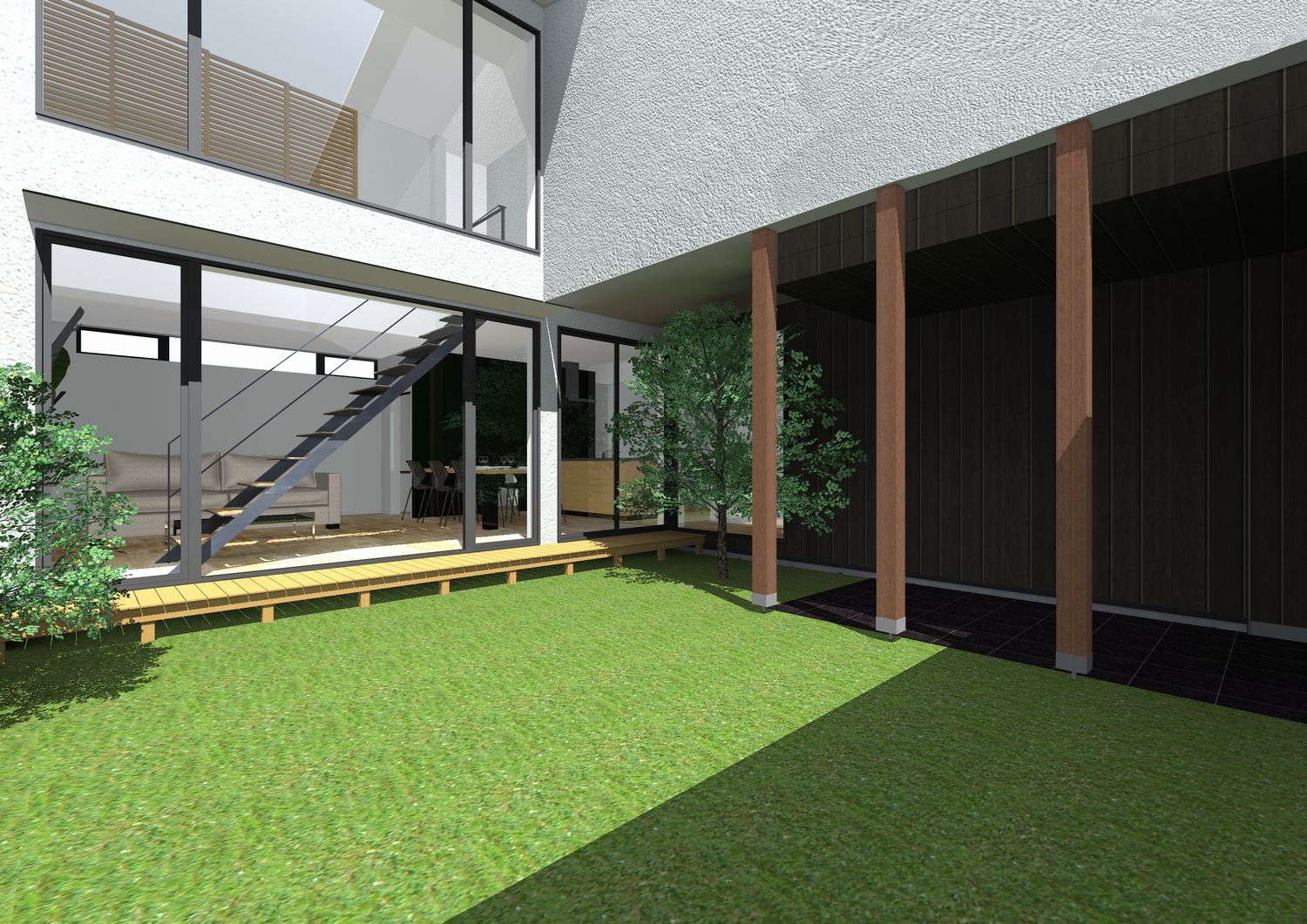 中庭には小さな丘も作って、楽しい邸宅となりそうです。