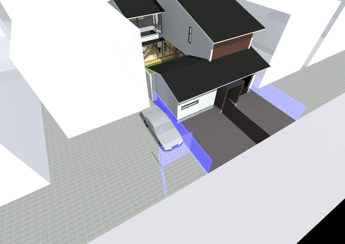 周辺の既に住まれている邸宅とも重ならないように配慮して計画しています。