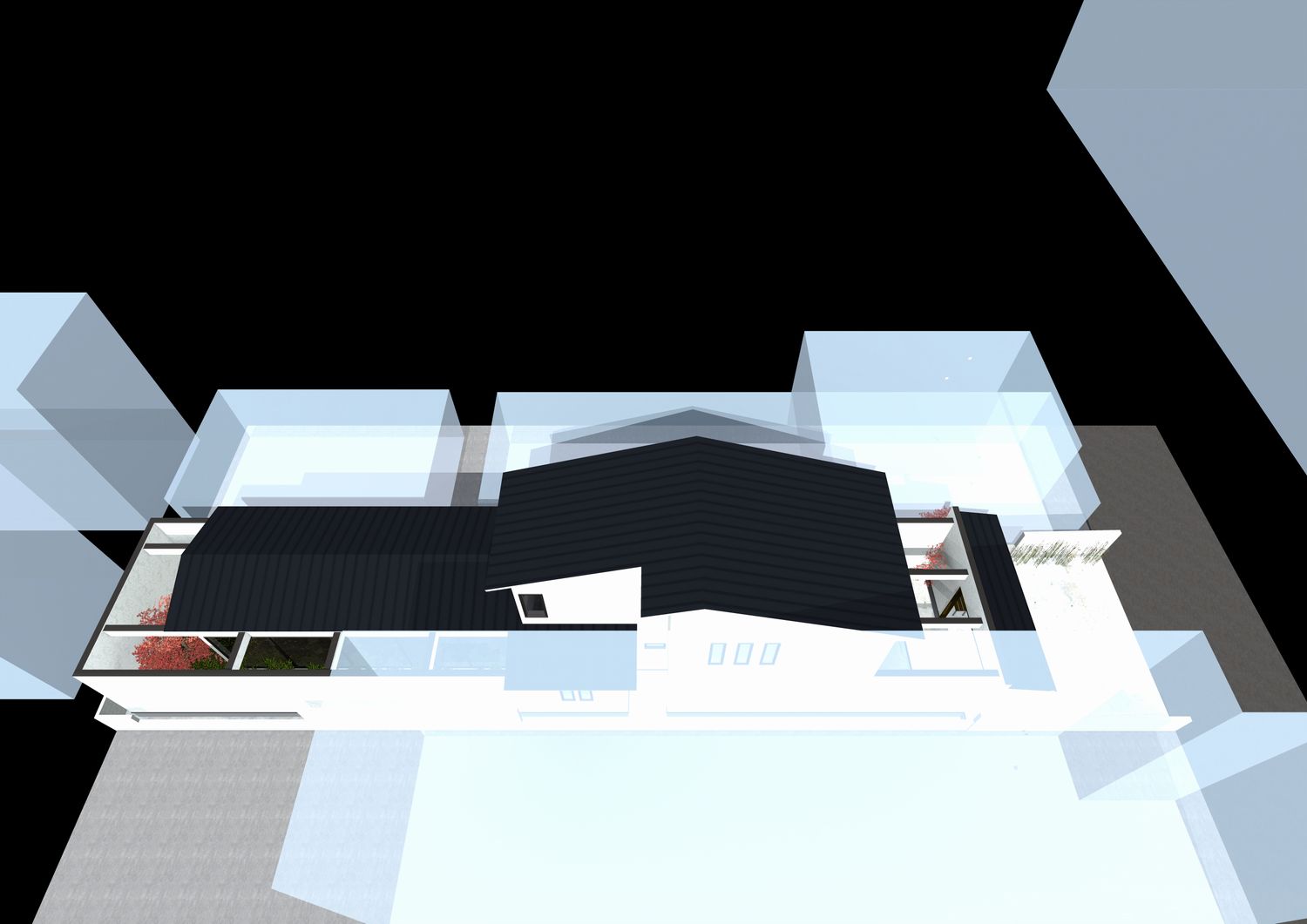向かいが6階建てのマンションだったため、一部を2階建てにすることで少し壁をつくり、