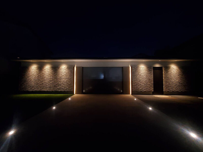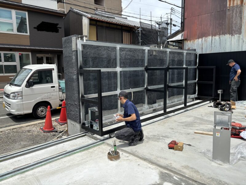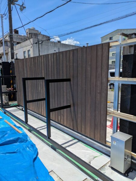 両面木の板を貼って、何と電動の横引きシャッターに。