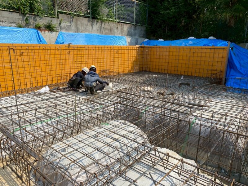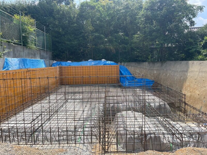 先日基礎着工をお伝えしました邸宅は、現在順調に基礎の配筋工事を行っています。