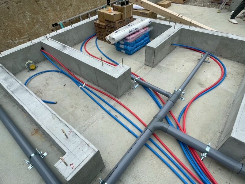 床が出来ると見えませんが、このように配管がめぐっています。