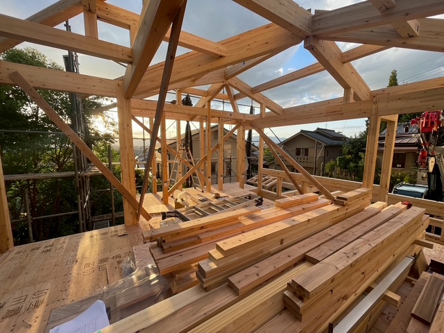 1日目夕方には棟が上がります。
