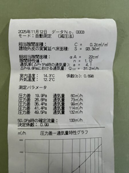 C値0.2c㎡/㎡という好結果。(厳密には0.24)