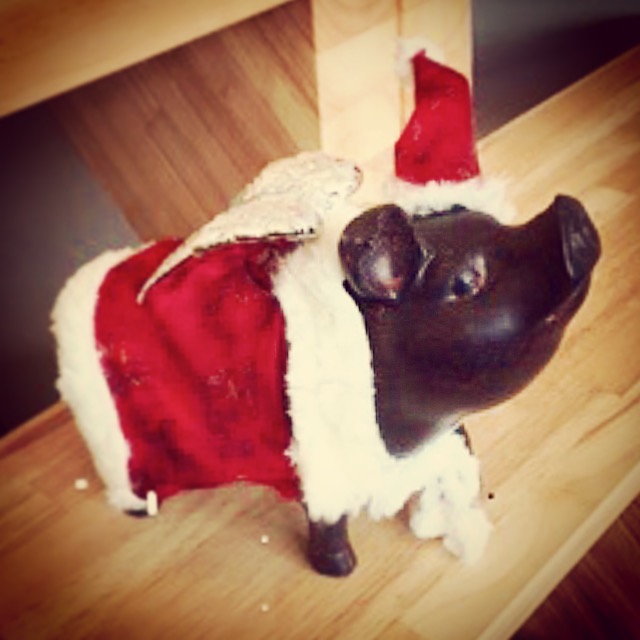 弊社がお引渡し時にお渡ししている「幸運の豚」にサンタの衣装を着せた 写真を送っていただきました!
