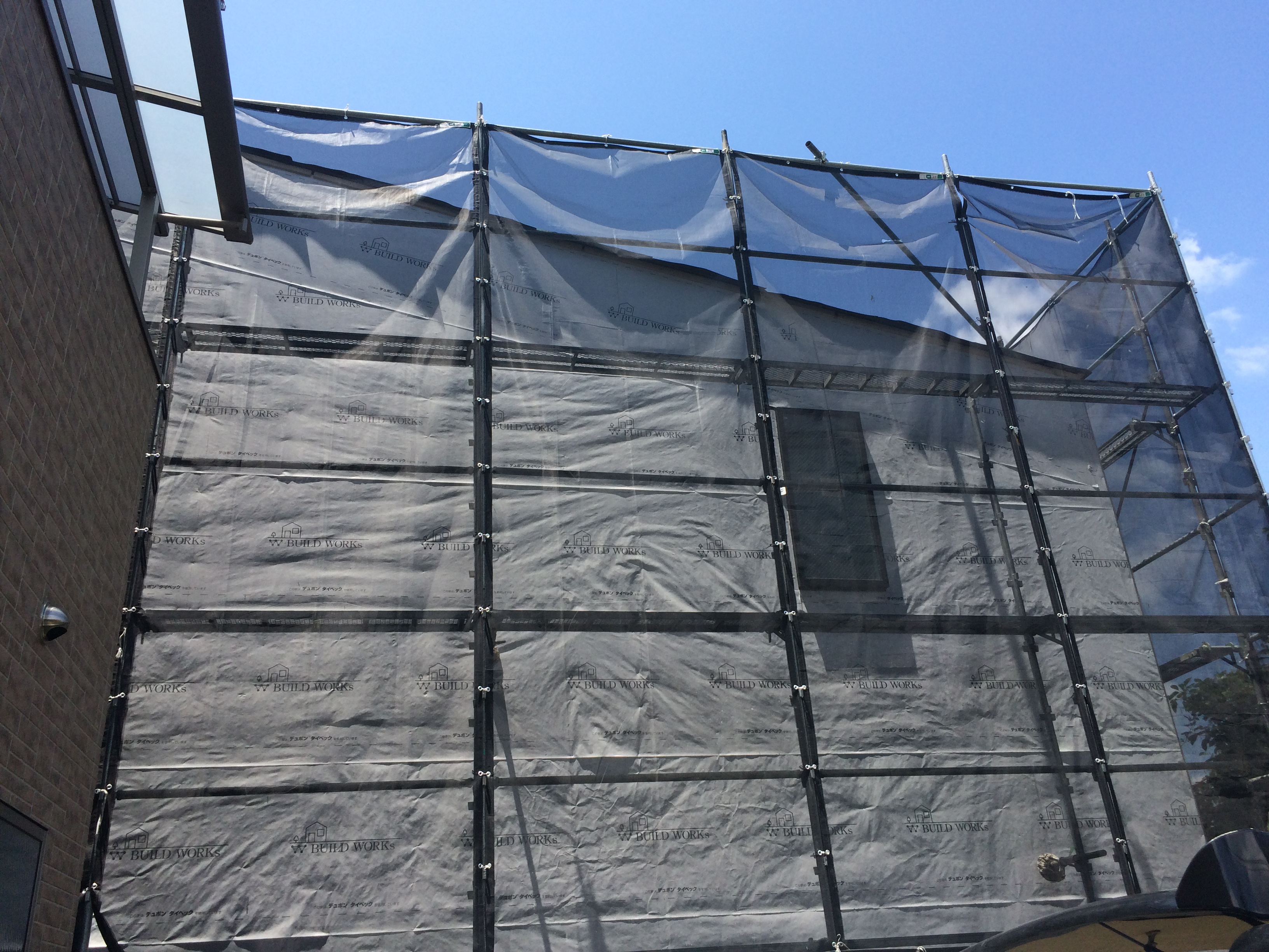 アルミサッシが取り付けられ、外壁の工事が始まりました。