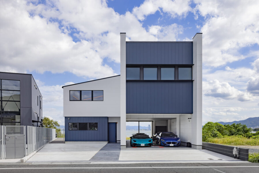 車4台分のビルトインガレージを設けるとともに、屋外に来客対応の駐車スペースを3台分、