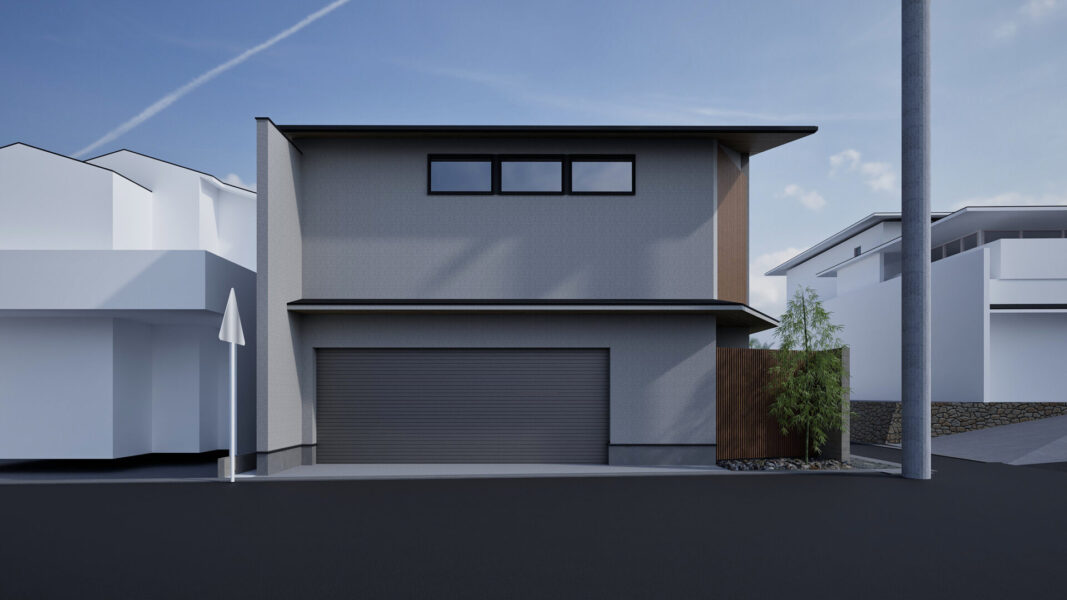 外壁はグレーを基調とし、光の角度によって表情を変える上品なニュアンス。