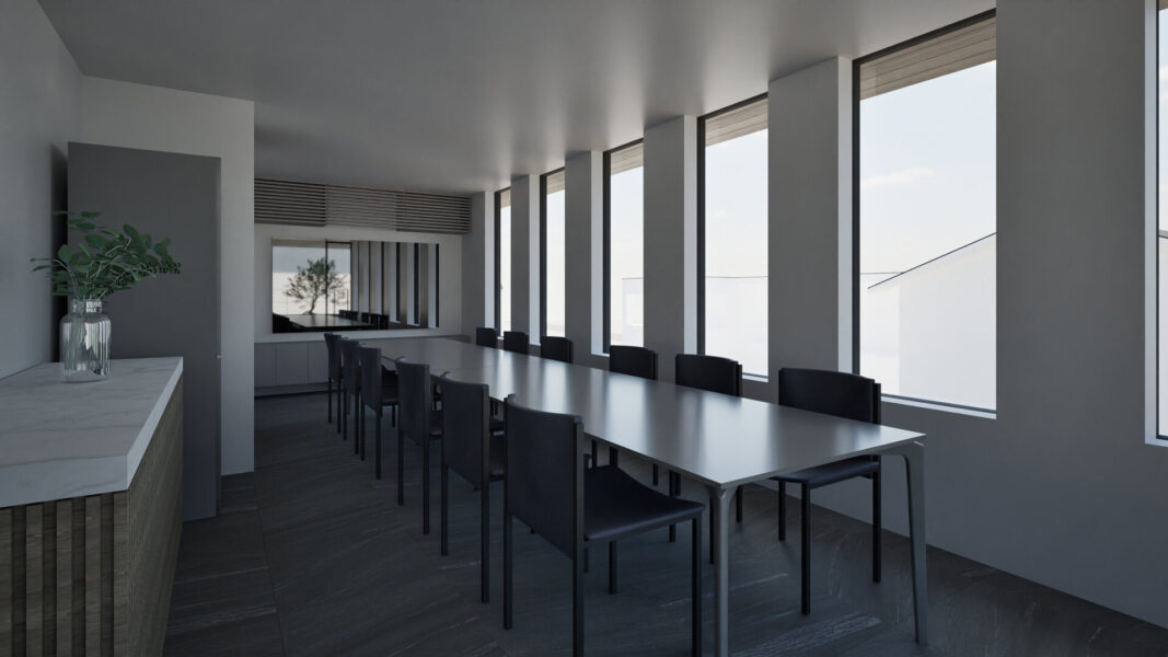 2階には人を迎え入れる半パブリックな空間を配置。